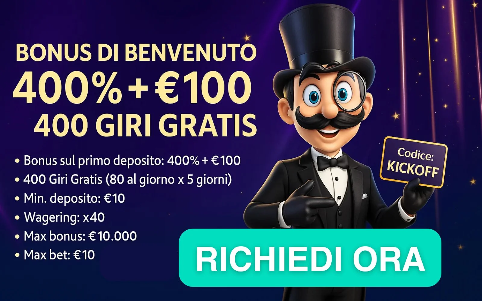 KICKOFF - Bonus sul primo deposito: 400% + €100